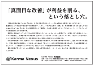 弊社コラム「現場の改善が利益に結びつかない理由」が掲載されました。 設備財業界のR&D情報誌にて、真の利益創出に向けた改善のあり方を提言しています。 詳細は本誌をご覧ください。